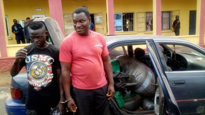 The two suspects were arrested by policemen attached to the Redeemed Camp Police Divisional headquarters who were on routine patrol along Simawa road.