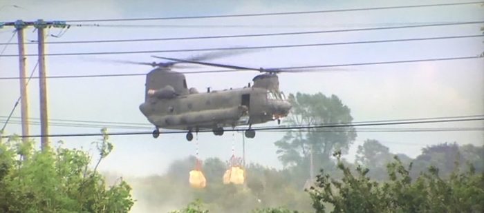 Royal Air Force helicopters were also deployed to drop sand and ballast to reduce the flow of water from the River Steeping.