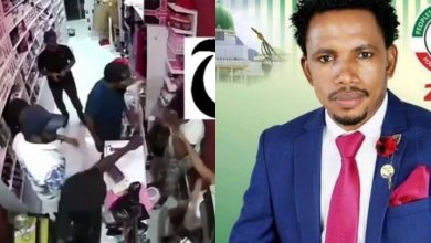 Serving Nigerian Senator Elisha Abbo assaults a female staff in an Adult toy shop with a Police officer watching.