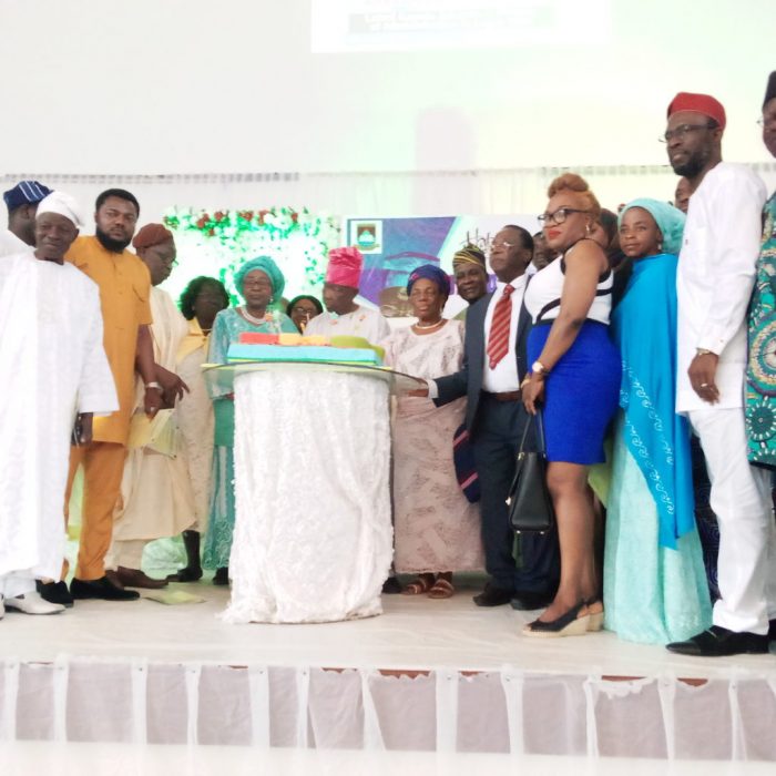 Alhaji Lateef Jakande, First Civilian Governor, Lagos State, his wife, children,family and members of the the Lagos State University (LASU) during a day colloquium, organised by the LASU, Faculty of Arts, to celebrate the Elderstatesman’s 90th Birthday on Monday in Lagos.