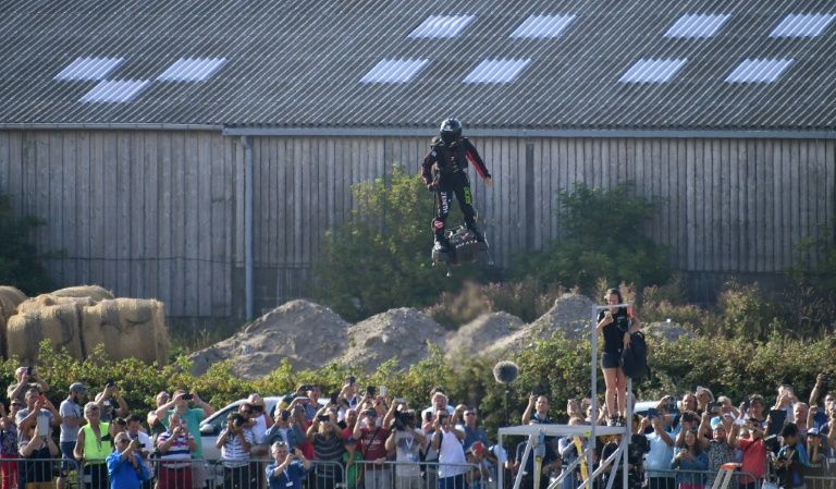The flyboard is fuelled by kerosene stored in the rider’s backpack.