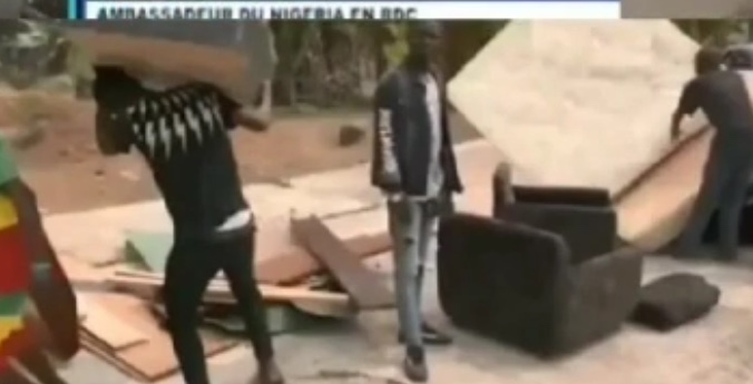In the video, properties belonging to the embassy were said to have thrown out of the building and the Nigerian ambassador Mr. Ibim Nkem Charles and other diplomats ejected.