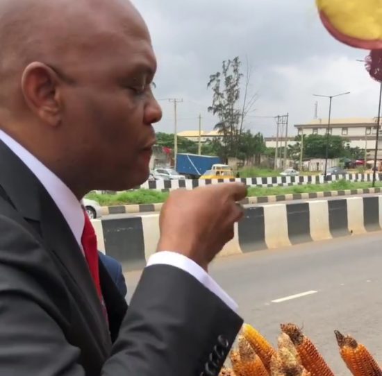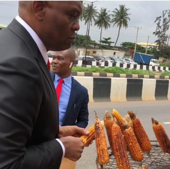 Tony Elumelu: buying roasted corn on Lagos road