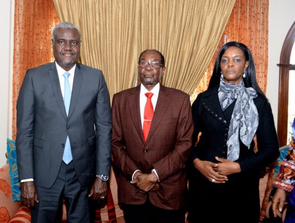 February 2018, Mugabe and Grace with AU Commission chairperson Moussa Faki Mahamat