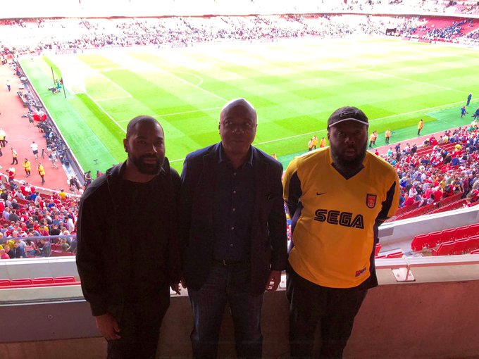 Former Senate President, Dr. Bukola Saraki and his sons, Seni and Niyi were at the Emirates Stadium, London on Sunday to watch the match between Arsenal and Tottenham.