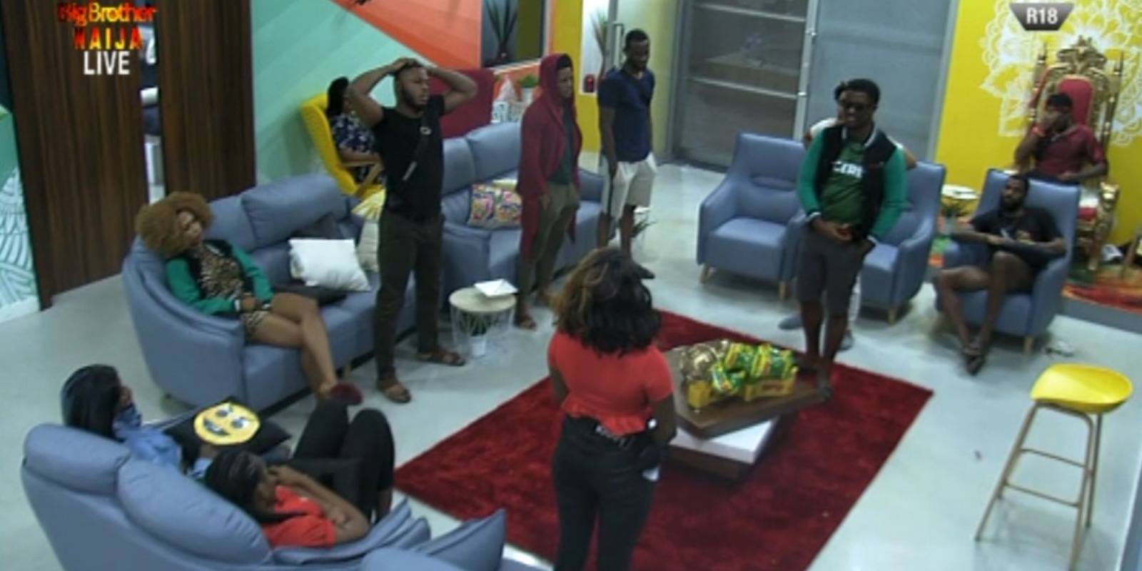 Elozonam, Frodd, Khafi, Omashola and Venita have been nominated for eviction. Although Khafi escaped the initial nominations, Seyi ended up putting her up to save himself.