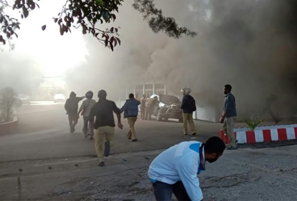 Building burns as fresh protest erupts in Wamena Papua in Indonesia on 23 September. Photo Straitstimes.com