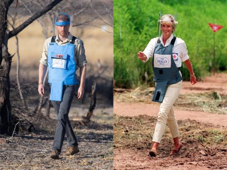 Harry visited a landmine detonation field in the town of Dirico in collaboration with British charity Halo Trust. Dressed in a blue splinter vest, he helped to destroy one of the mines that have remained in the southern African nation’s soil after 25 years of civil strife.
