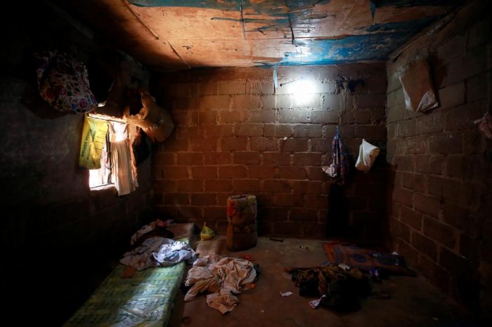 Reuters journalists who visited the labyrinthine building saw wheels and generators attached to metal chains. Floors were strewn with litter and stained sponge mattresses. Flies swarmed.