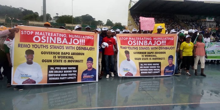 The All Progressives Congress (APC) youths in Remo land, Ogun State, have rooted support for the Vice president, Prof. Yemi Osinbajo, warning the perpetrators which they tagged desperate cabals to stop humiliation and maltreatment against him.