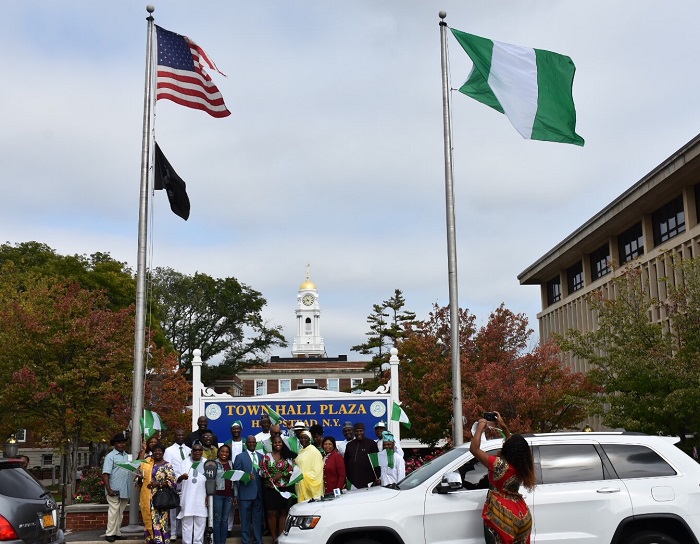 The highpoint of the ceremony was the hoisting of the Nigerian flag besides that of the U.S. in front of the Hempstead Town Hall Plaza.