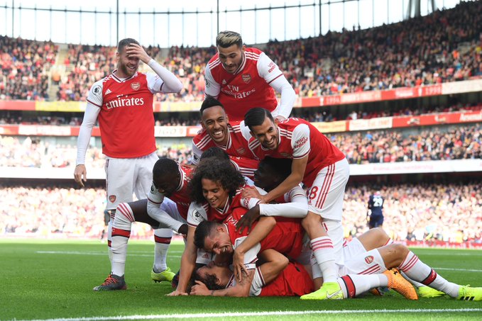 Arsenal’s record signing Pepe came close to doubling their lead with a shot that just missed the top corner while Pierre-Emerick Aubameyang also saw a shot from distance flash just wide in the first half.