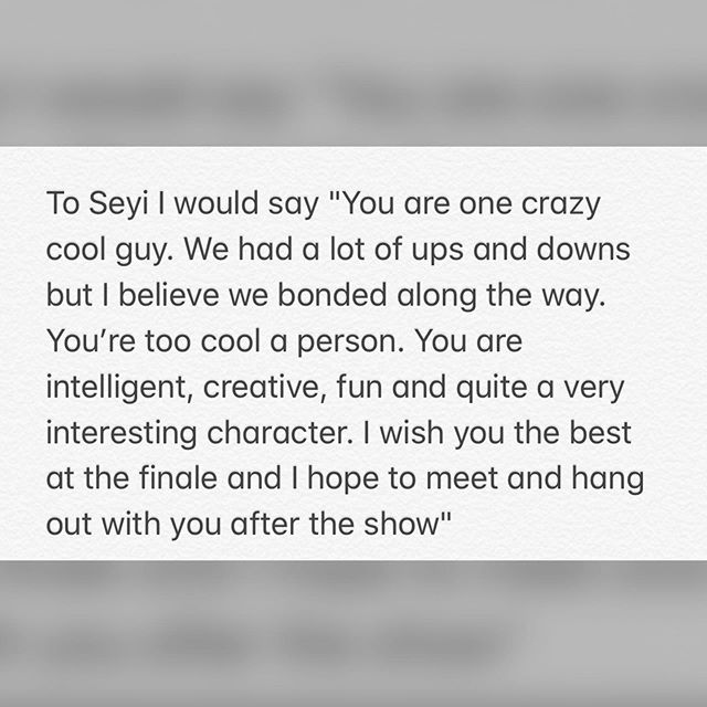 I’ve also had a while to think about what I would have said to the last 5 big Brother Naija housemates in the house before leaving. In light of the finale, I would love to get these thoughts off my chest. swipe—>