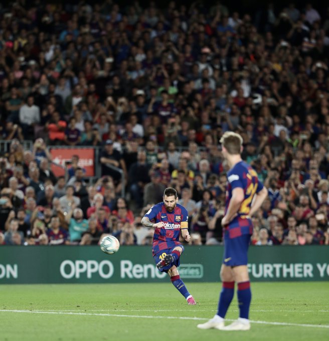 Barca captain Messi scored from a free kick in the 78th to finally get off the mark in a season blighted by injuries but there was a sour end to the game for Ernesto Valverde’s side.