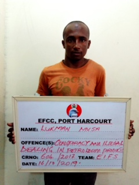 In the case of Lukman Musa, he was arraigned by the EFCC Port Harcourt’s Zonal Office on one- count charge bordering on possession and transporting Low Pour Fuel Oil (LPFO) without appropriate license.