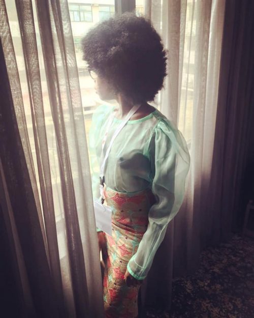 She posted photos of the dress on Facebook, with the caption: Day 4 at Ake festival I’m wearing iyobosa clothing by Iyobosa Kudayah.