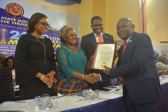State’s Head of Service, HOS, Hakeem Muri-Okunola said the award would further encourage diligence, commitment and loyalty among public servants in Lagos State in anticipation that the award would spur them to continue to put in their best in the service of the state, adding that the award was a mark of honour to distinguish them among the state’s workforce.