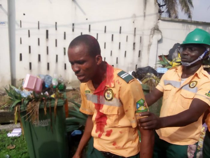 Over six operatives of the Lagos State Environmental Sanitation Corps (LAGESC) have been badly injured on Friday 6th of December, 2019 while carrying out enforcement on street trading along Queens Drive in Ikoyi, with three of their operational trucks damaged.