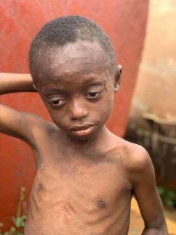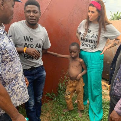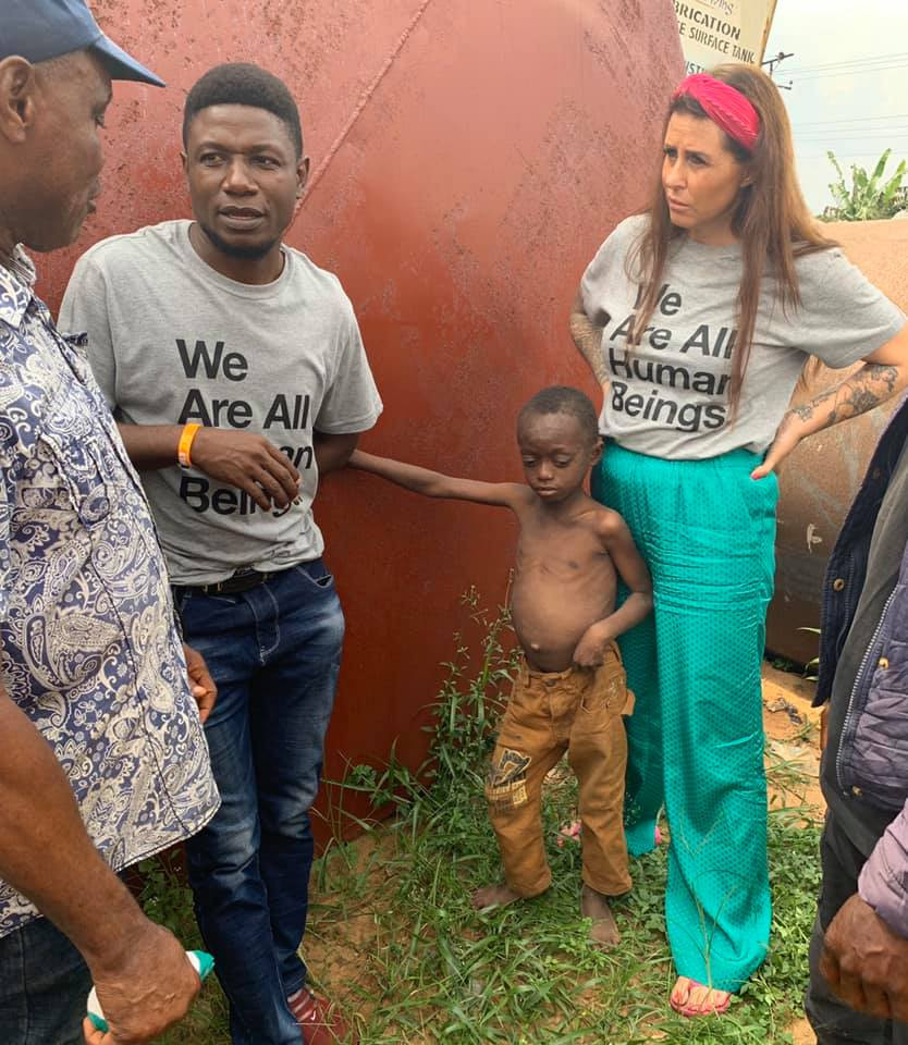 She shared photos of herself and her Nigerian husband, David Umem, rescuing the malnourished little boy pictured above who was abandoned by his family.