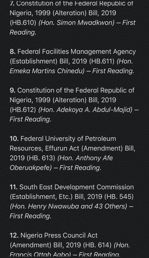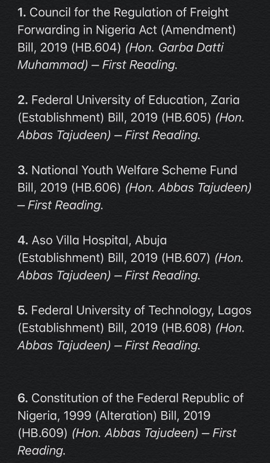 However 11 other bills, one of which calls for an act to provide for the establishment of Federal Polytechnic Wailo, Ganjuwa bauchi state passed through the first reading.