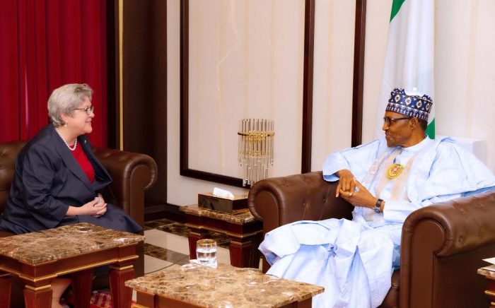 Time for talk: Ambassador Ms Mary Beth Leonard and President Buhari
