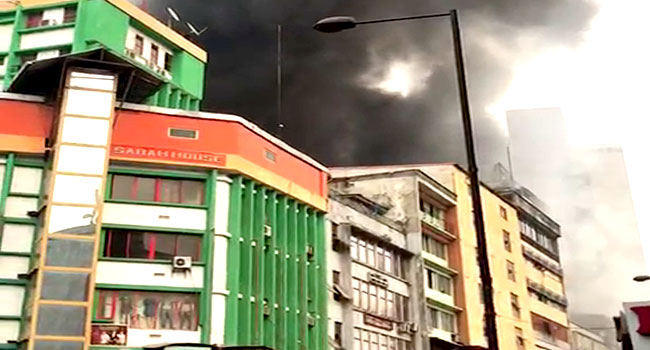 Some buildings inside the Balogun market, located on Lagos Island are currently on fire.