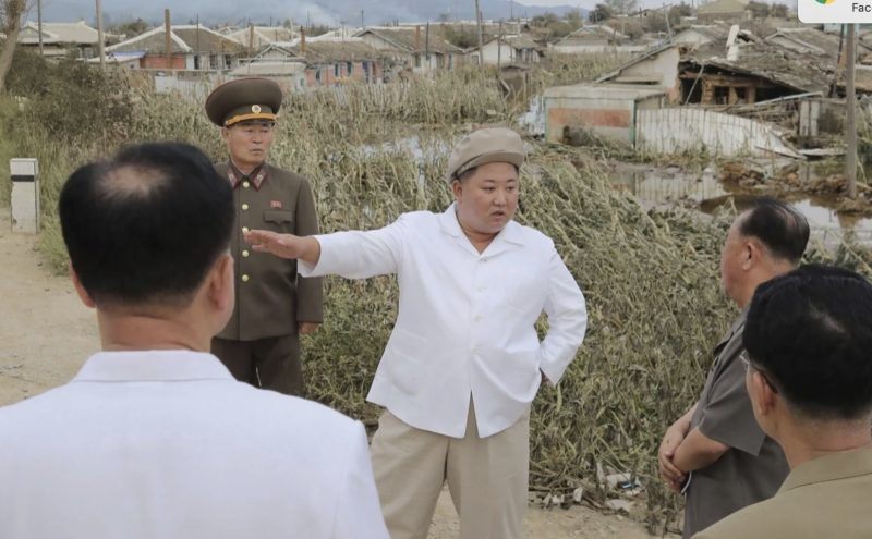 Kim Jong Un during the visit to typhoon hit areas. Photo KCNA