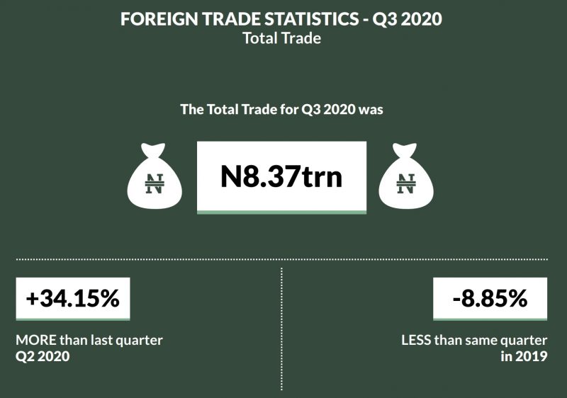 Despite that Nigeria recorded a trade imbalance in the quarter, total exports was 34.85% higher compared to Q2.