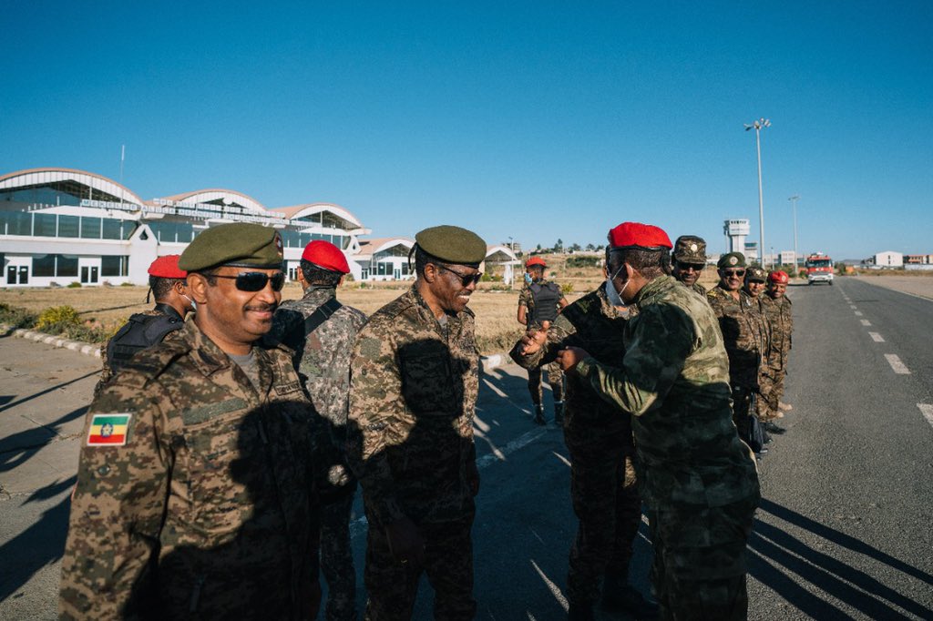 Went to Mekelle and met with commanders of the ENDF as well as the Provisional Administration of Tigray. Telecom & electricity currently being restored after repairs; infrastructure works underway & humanitarian relief provided. We will continue apprehending the criminal clique. pic.twitter.com/EkM2szlv7S