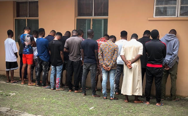 The suspects are: Oluwatosin Akintoku, David Raheem, Sanusi Ganiyu, Williams Tosin, Taoreed Quadri, Keye Abdulahi, Adeyemi Babatunde Abdulkarim, Olalinku Oluleye Adakore, Okunola Adeyemi Jaleel, Caston Dada Ayomide, Taoreed Qudus Oluwaseun, Ahmed Olaliku Ajayi, Zekery Okeme, Falana Adewole Ibrahim, Godpower Silvester, Adam Ariyo, Kelechi David Mokwe, Ifeanyi Matt, John Awajinomida Emiyaru, Olayiwola Oluwaseun, Adegbola Shola, Owolaga Toba, Azeez Oludare Sanni, Daniel Ojo, Billiqnin Olabanji Kunle, Ismail Omoniyi Aspen, Bankole Ademola Owolabi, Ayeni Samuel Segun, Emmanuel Chuks and Lukmon Yusuf Damilare.