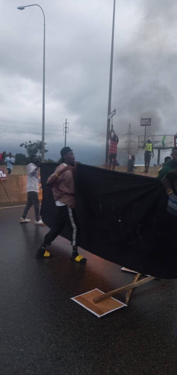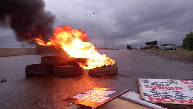 Protesters also barricaded the express with tires and started a bonfire as the protest has caused serious traffic for commuters plying the road.