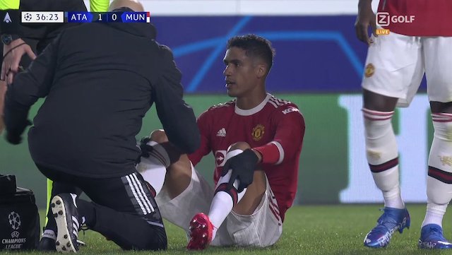 Manchester United defender Raphael Varane limped off in the 38th minute at Bergamo’s Gewiss Stadium in the Champions League match against Atalanta.