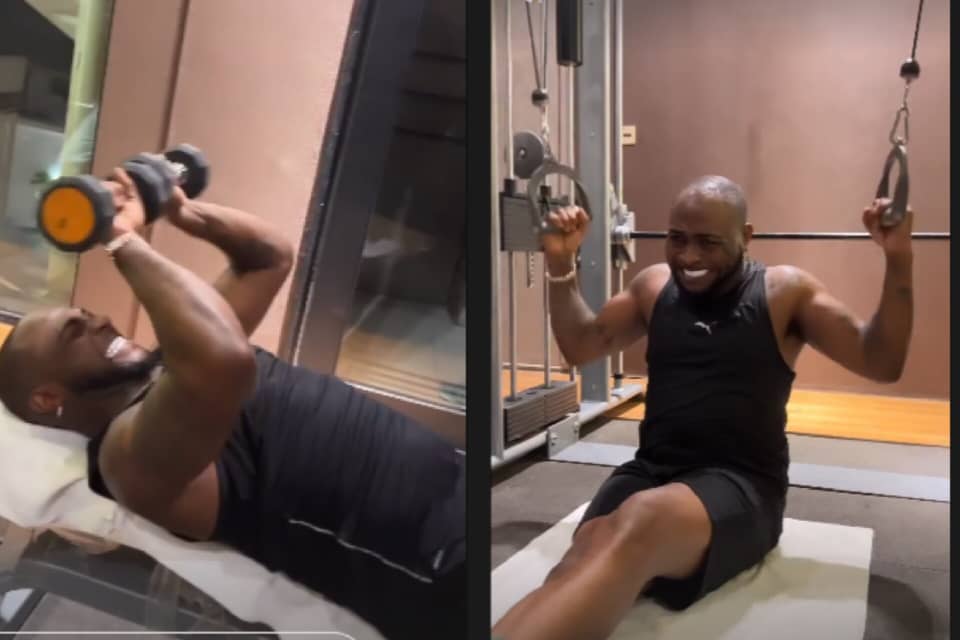 Moment Davido hit gym for fitness like Tiwa Savage (Photos)