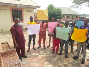 They barricaded the headquarters of the State Physical Planning Board and the entrance of the Government House in Awka, as they displayed placards with various inscriptions