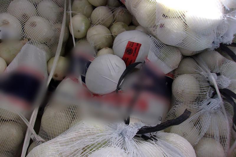The packages of meth — more than 1,336 pounds (606 kilograms) — were shaped into small globes with a white covering, the agency said, and meant to blend into the onions. The drugs are estimated to be worth $2.9 million on the street.