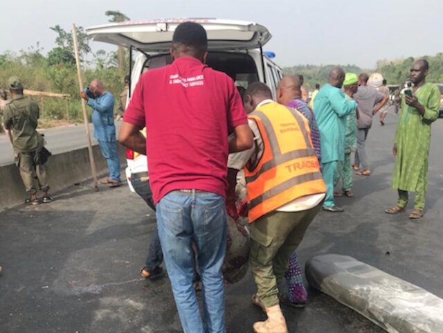 “According to witnesses, the commercial bus was outbound Lagos enroute Ibadan, before it experienced a tyre burst while on motion, lost control and then somersaulted, killing one of the passengers in the process.