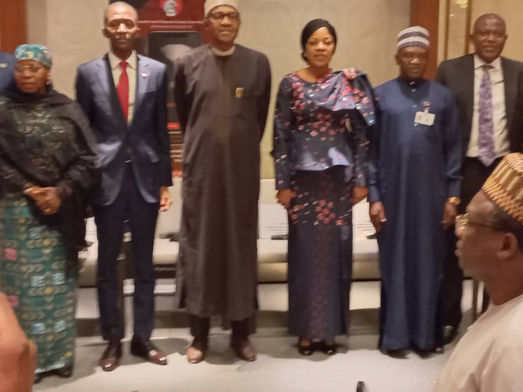 Abdulrasheed Bawa, the EFCC Chairman (2nd left), President Muhammadu Buhari amongst other officials.
