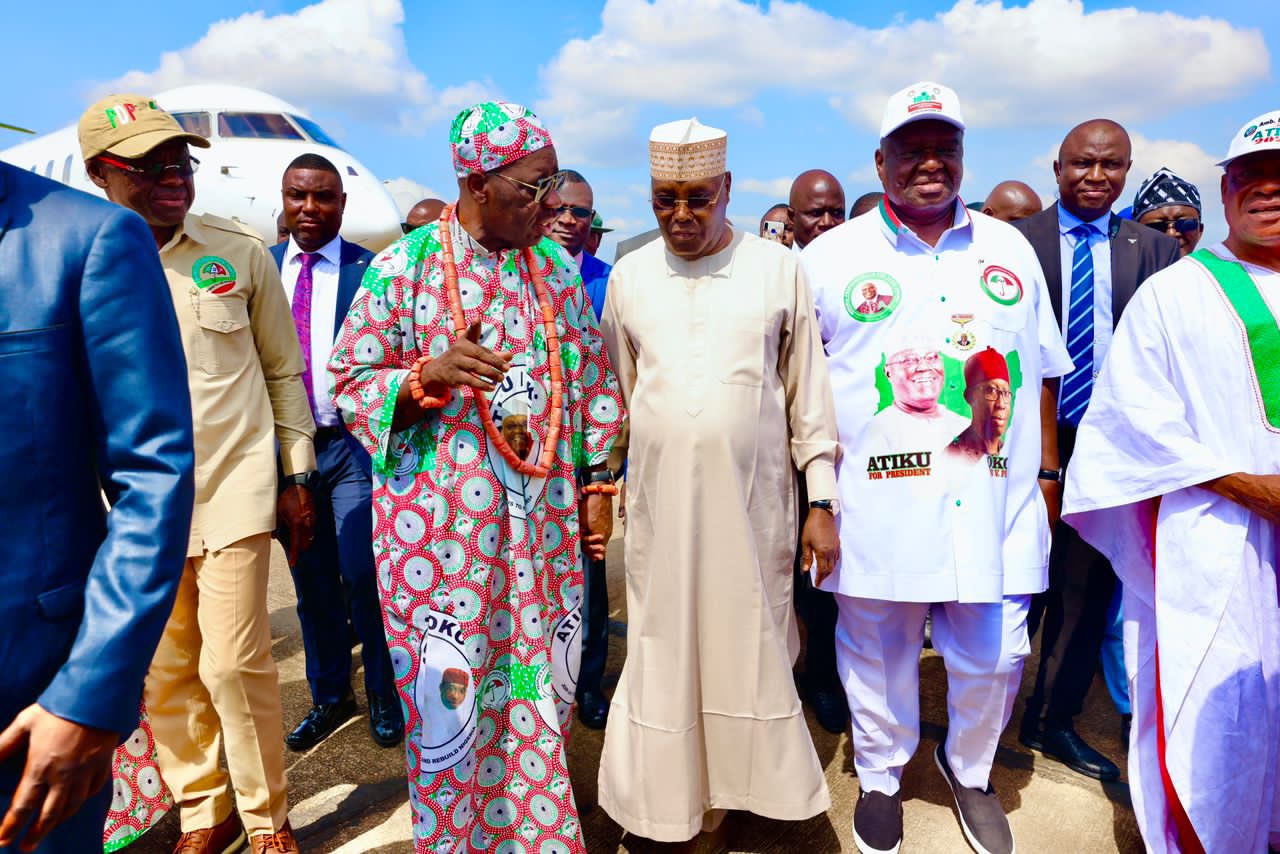 Atiku Abubakar, the presidential candidate of the People's Democratic Party has arrived in Edo to attend a campaign rally in Benin in continuation of his national campaign to garner votes in the next year's election.