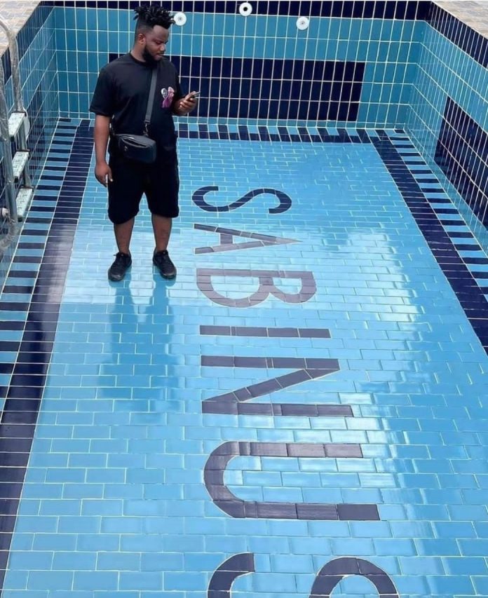 Sharing the good news with his fans, Sabinus posted on his Instagram story, pictures and a video clip of the new house with a customized swimming pool. Beneath the swimming pool, his character name “SABINUS” is written in black ink on a blue tiled surface.