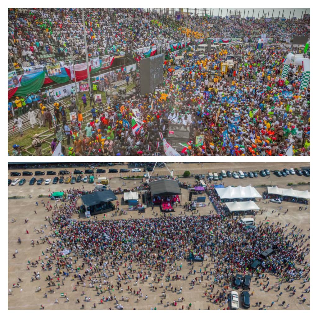 No noise was made, the photos and videos that emanated from Teslim Balogun Stadium spoke for themselves. Oh, they said it was rented crowd, but when Obi held his rally, it is organic crowd. Stupidity!