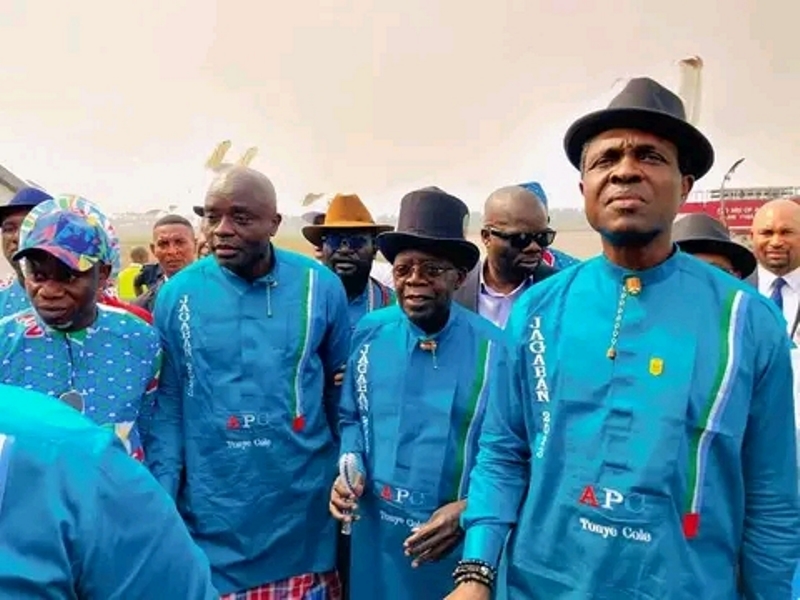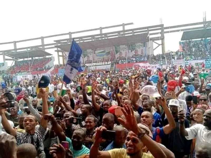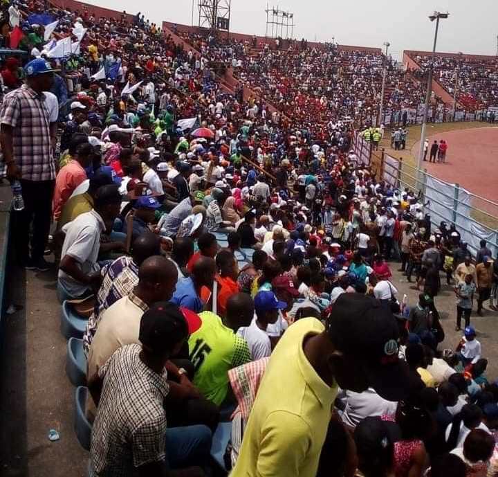 Thousands of APC supporters stormed the Yakubu Gowon Stadium in Elekahia, Port Harcourt, venue of the rally to drum support for Tinubu.