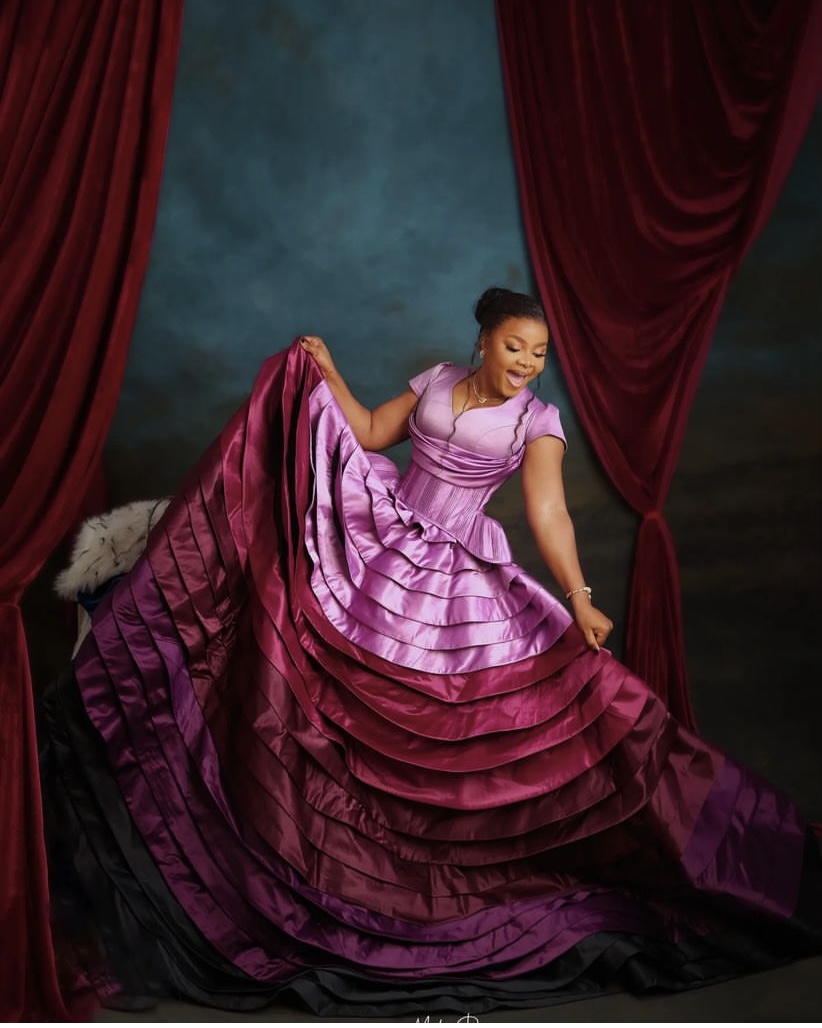 A Nigerian princess herself, Bimbo looked lady-like in a pink and wine-toned ruffled and layered dress.