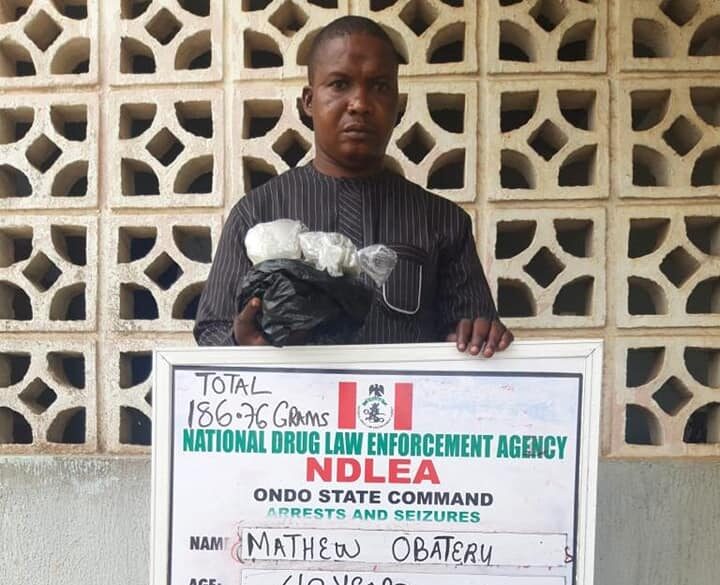 A notorious drug dealer in Okitipupa area of Ondo state, Mathew Obateru, 42, has also been taken into custody after different quantities of Cocaine, Heroin, Methamphetamine, Colorado and Loud were recovered from him.