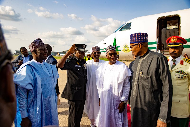 The president arrived on Tuesday afternoon at the Nnamdi Azikiwe International Airport where he was received by security operatives and some of his cabinet members.