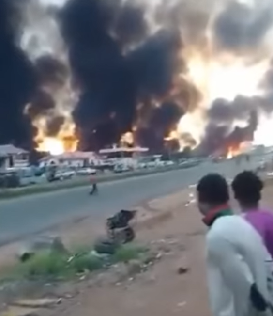 It is believed that the explosion was caused by a spark from a phone held by one of the people scooping petrol spilt from a tanker.