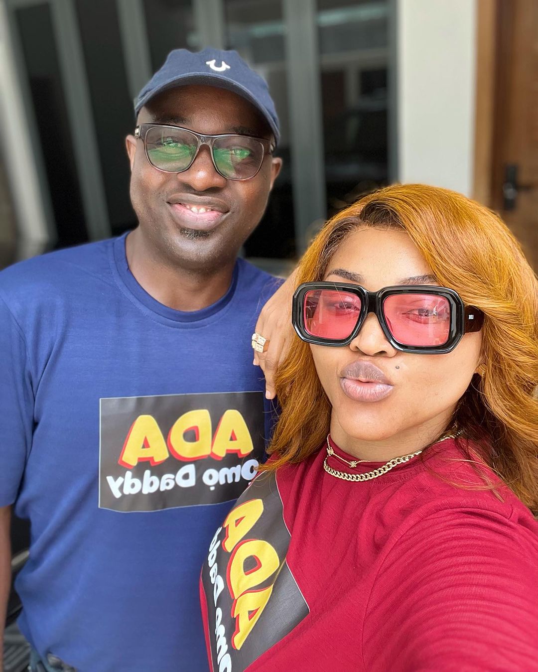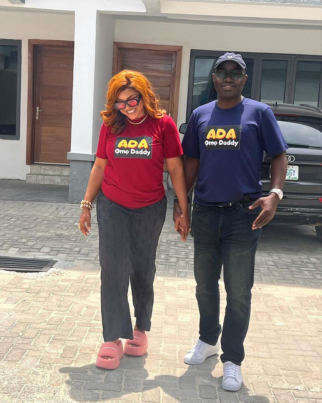 The couple took to Instagram to share a series of captivating photos, showcasing them dressed in matching t-shirts adorned with the title of the upcoming movie, “Ada Omo Daddy.”