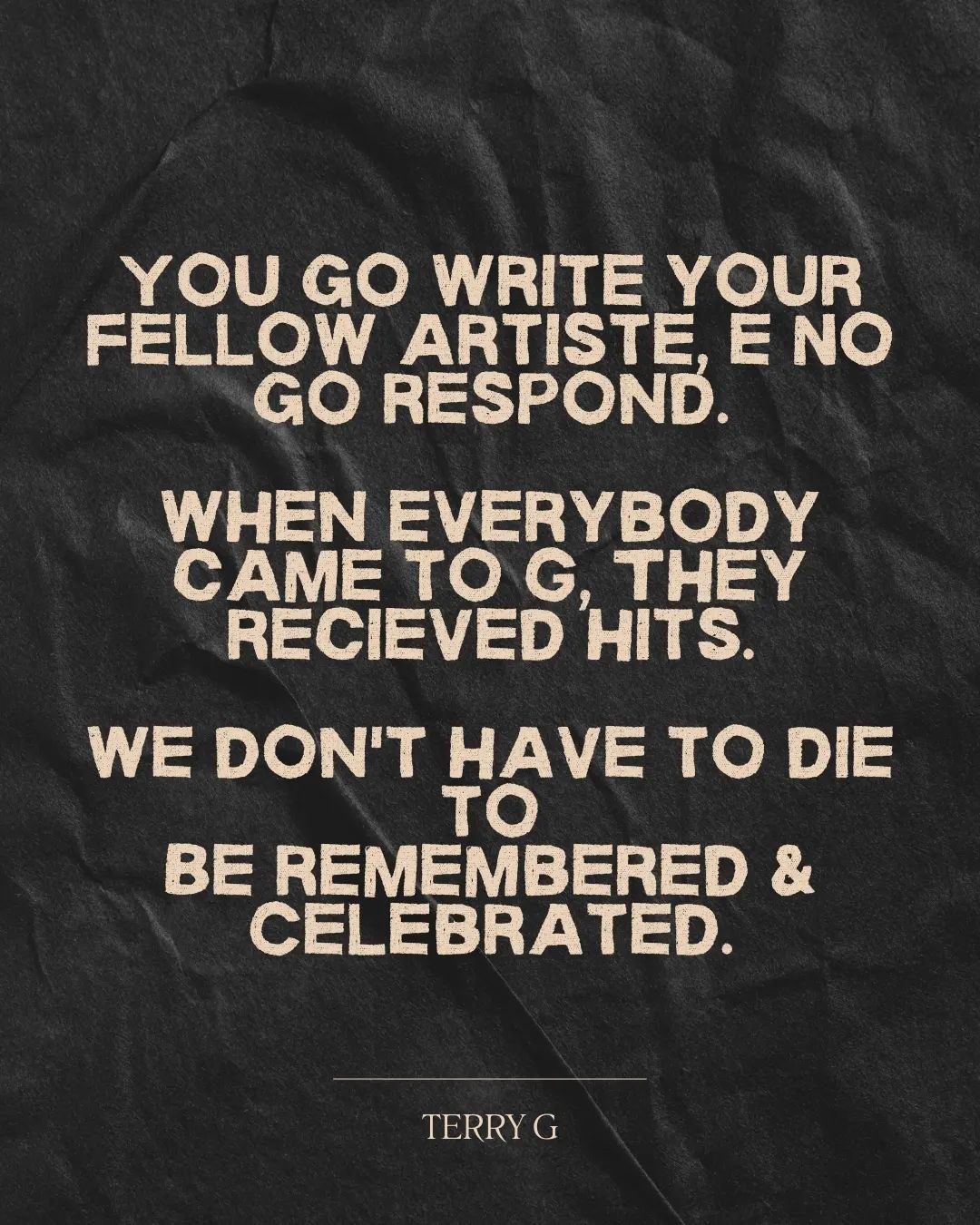 Expressing his frustration, Terry G questioned whether it would take his death for them to acknowledge his contributions.
