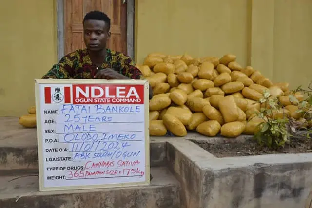 The Brigagde Commander, Brigadier General Mohammed Tajudeen Aminu while handing over the cannabis weighing about 176 kg to the National Drugs Law Enforcement Agency (NDLEA) in Abeokuta, said the suspects were arrested at Olodo, along Abeokuta-Imeko road, in the Abeokuta North local government area of the state by troops during routine patrol on January 6, 2024.