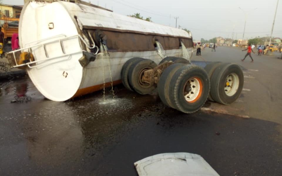 Tanker loaded with petrol falls in Ile-Ife, spills fuel