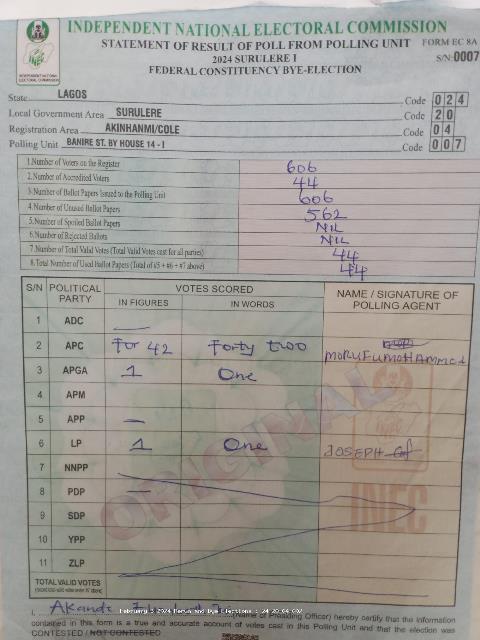 Results monitored by PM NEWS on IRev portal of the Independent National Electoral Commission (INEC) showed that Laguda won massively in the six wards that made up the Surulere Federal Constituency.